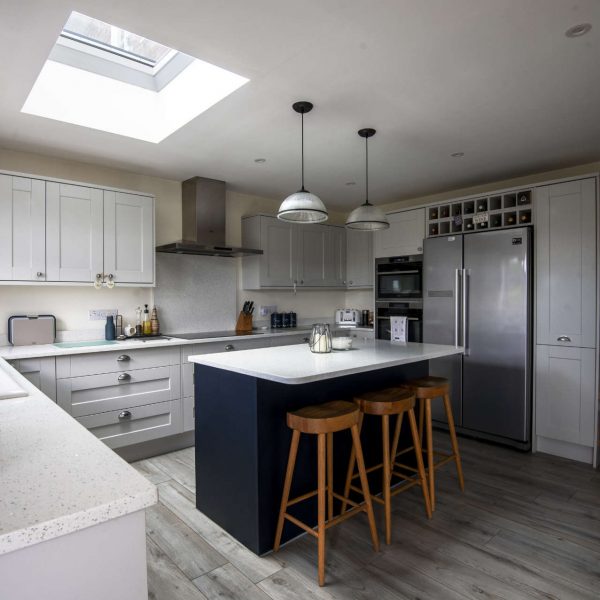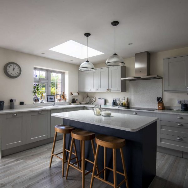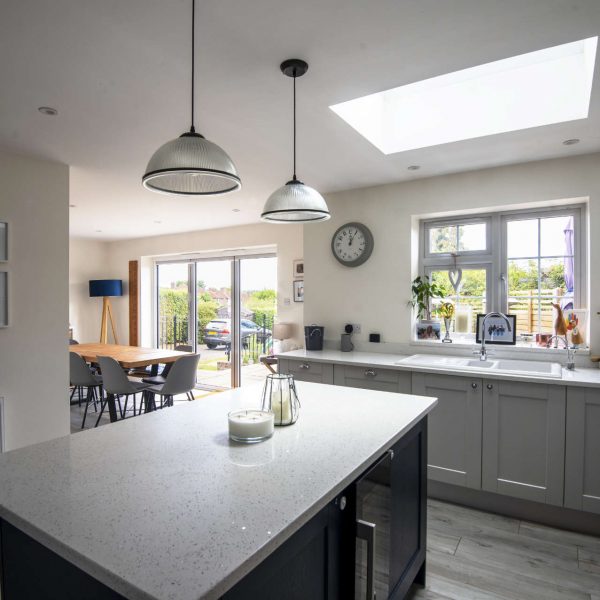 Positioned on an unusual corner plot with large rear garden, this property is located in one of Guildford’s conversation areas. Building a double-storey and single-storey rear extension helped us deliver the spaces our clients and their young family needed. The main objectives were to create an open plan kitchen-dining area with separate utility, an extra bedroom and larger family bathroom. A great bonus was that we managed to alter an existing storage space to create a unique ensuite for the master bedroom. Although we faced an odd snagging issue post completion of the project, we really enjoyed being a part of the transformation of this family home.